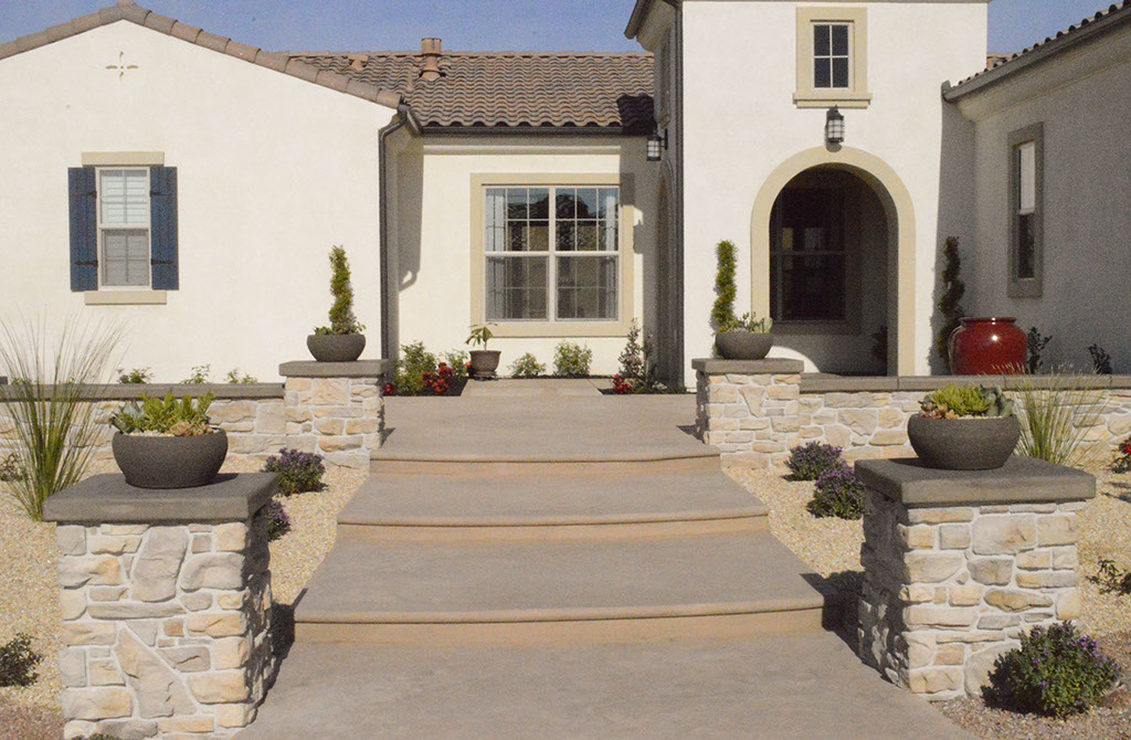 Project Features: Stone Veneer (Stone and Grout), Concrete (Color and Texture) and Landscape Areas