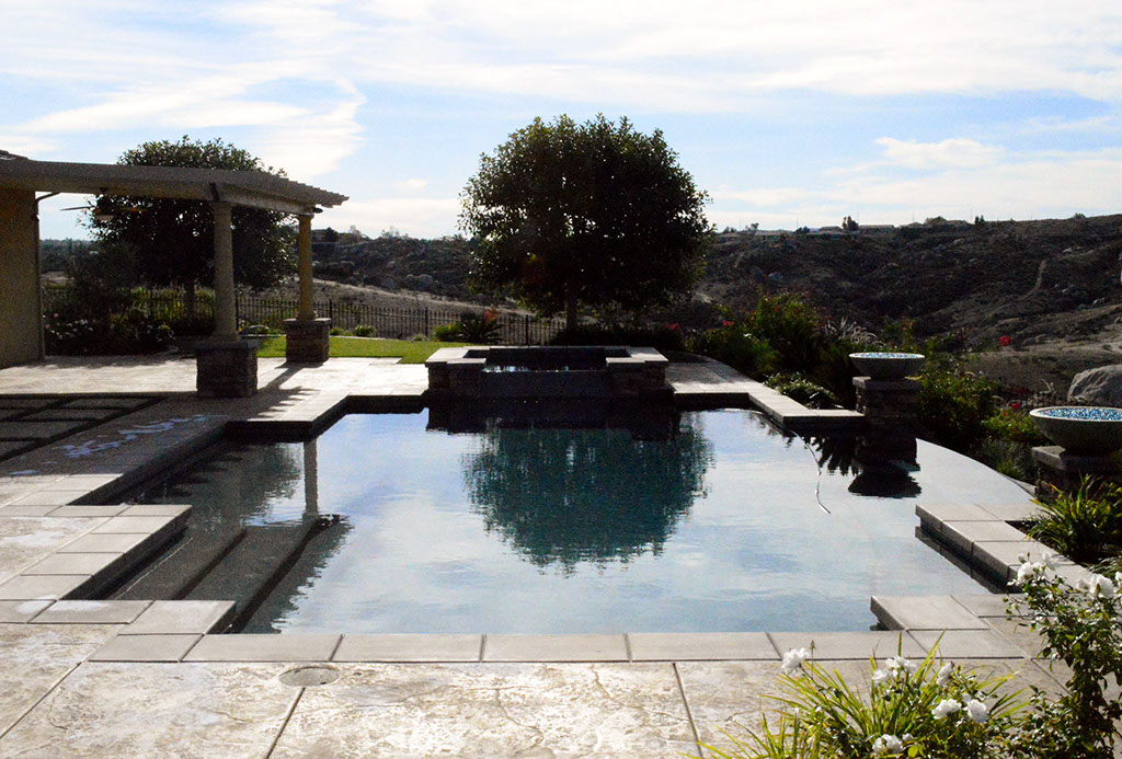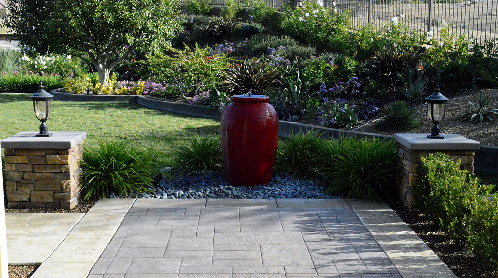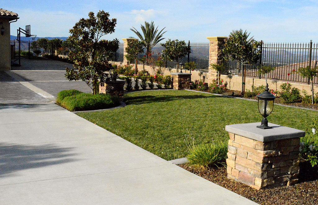 The Wei Residence is a project that also posed many challenges in terms of soil conditions and the multitude of slopes to consider. This project features all that you can imagine…a swimming pool, fire pit, BBQ island, lush trees, vibrant concrete colors, and stunning stone work that greatly compliments the home. The homeowners were looking for a modern/ elegant appeal to the front and back yard and we delivered. Most of the permanent fixtures and hardscape is “square” in shape which really sets the footprint to the design we wished to achieve. This has become one of our very favorites!